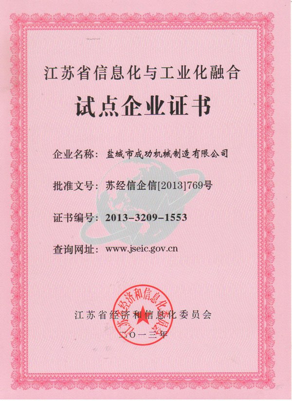 • 江蘇省信息化試點(diǎn)企業(yè)證書